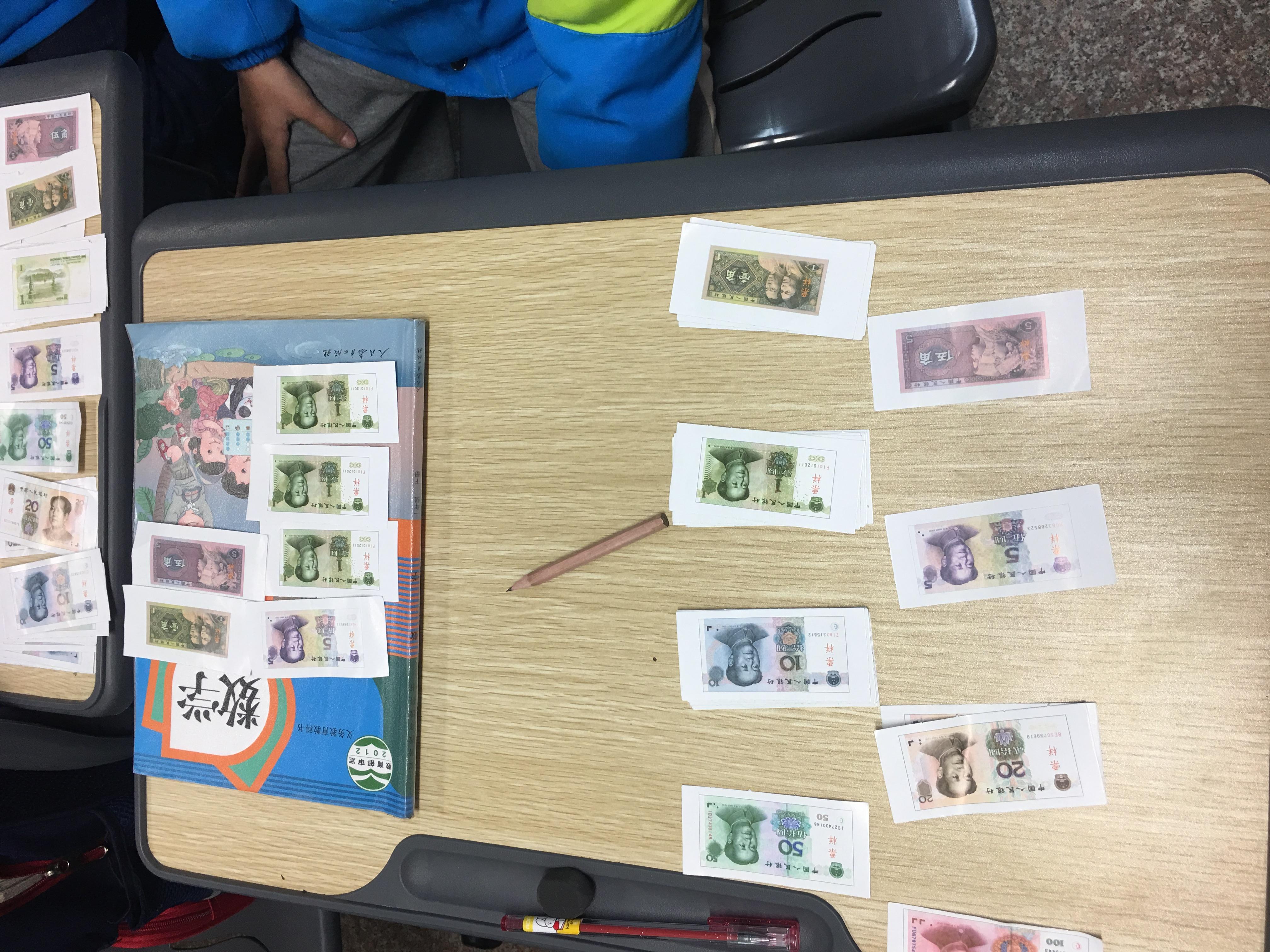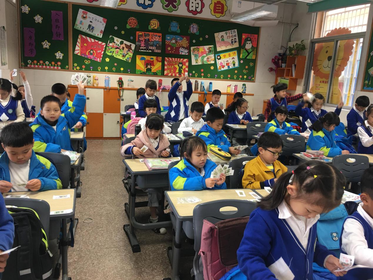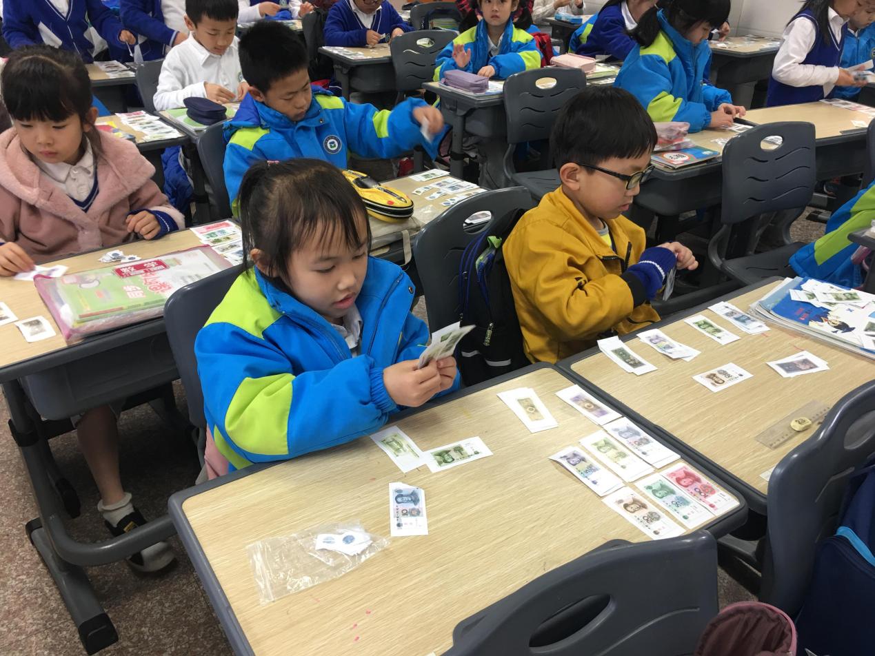 活动体会:通过学习同伴的介绍,学生对钱币的认识更全面,更深入,同时也拓宽了学生的视野。 第二阶段项目:认识人民币之等价交换——换钱 课堂活动掠影: