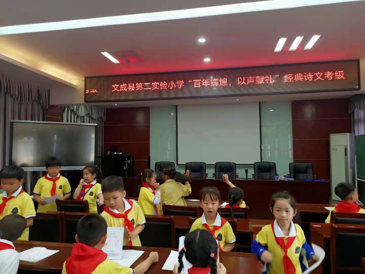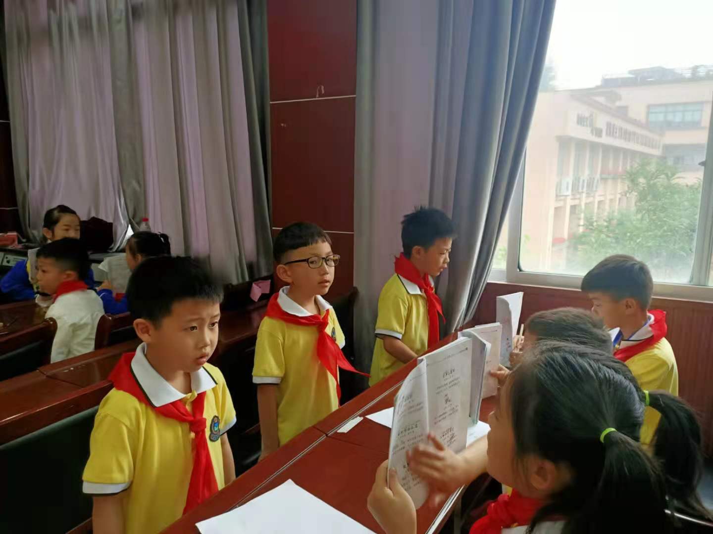 (一)古诗考级 本月特色评价,对学生的古诗词背诵进行考级。一开学,我就要求学生每天诵读《我爱记诗词》这本书中的古诗,并根据学校古诗考级内容,让学生每周背诵几首规定的古诗,通过学生互查、老师抽查、家长检查等形式进行监督。 6月1日上午,正值儿童节,全班学生兴致勃勃地参加了学校的古诗考级,取得了较好的成绩。大部分孩子申请考二级,也有小部分孩子申请考三、四级,结果全班孩子都顺利过关。 小考官准备就绪