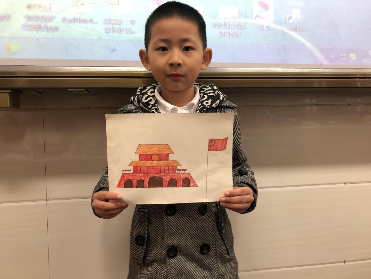 根据一年级小学生的接受能力和认知特点,选择有代表性的事物使他们了解我们的祖国,并通过画天安门来歌颂赞美祖国。