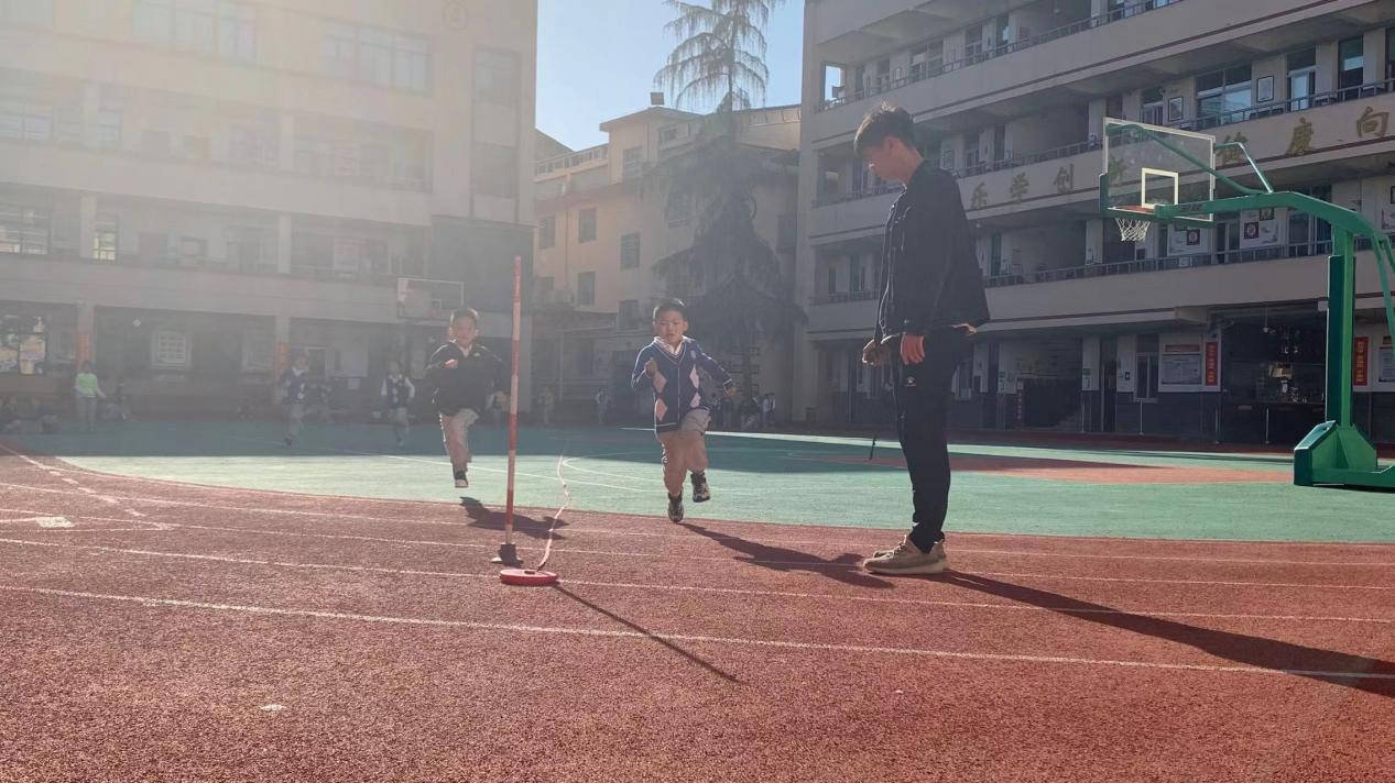 这个月的主题是争当旋风小飞人,旨在锻炼学生们的速度、灵敏性、力量性。课中的锻炼方法多种多样,以游戏为主:大渔网、黄河长江、迎面接力跑、冲刺跑、春播秋收等;以辅助练习为主:原地摆臂、前踢腿、高抬腿、弓步换腿等。最后进行了50米快速跑测试,评出了小飞人。