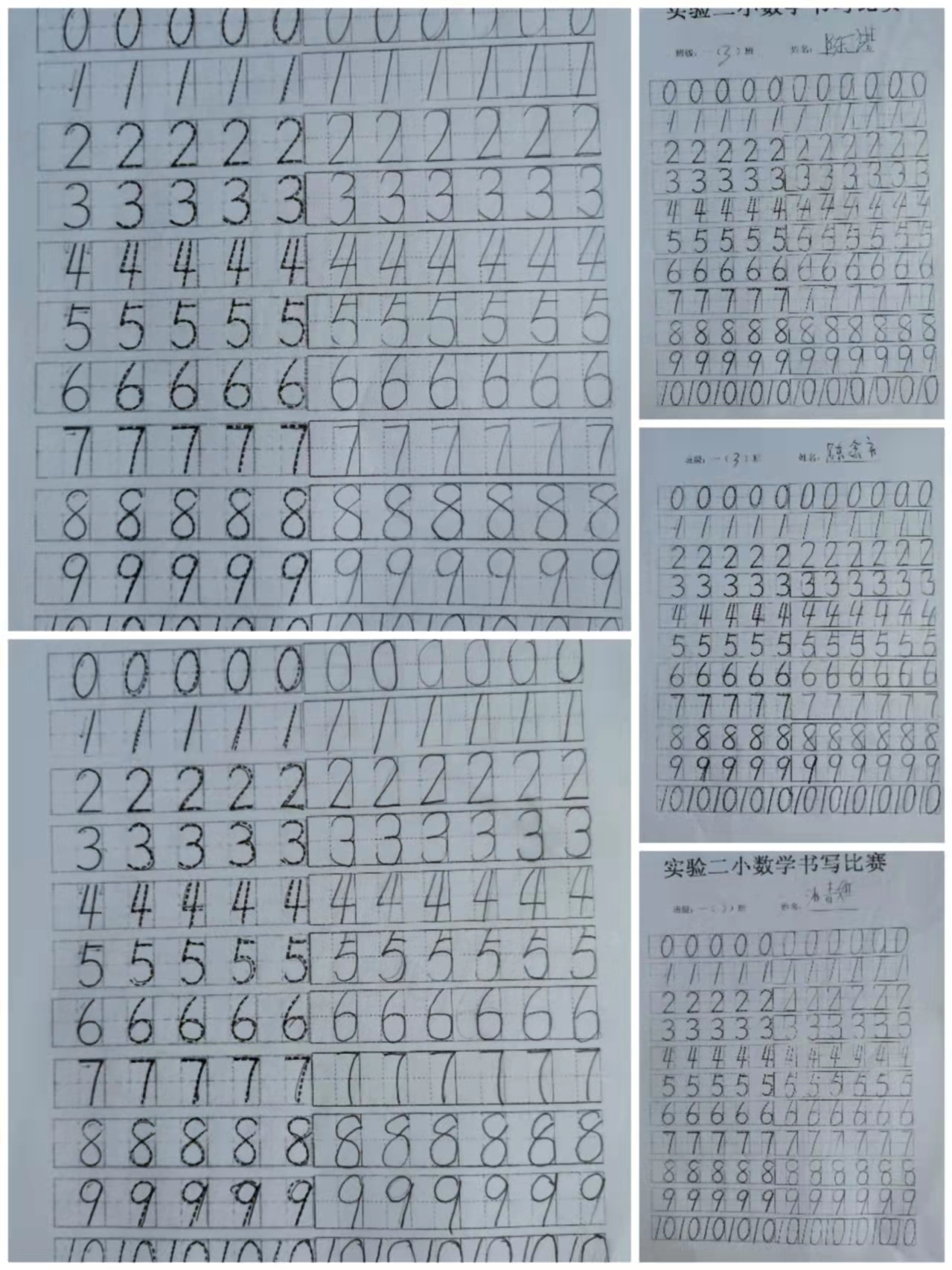 瞧!一个个正确美观的数字跃然纸上,展示了孩子们扎实的书写功底!一张张佳作,成为了一道道靓丽的风景线。