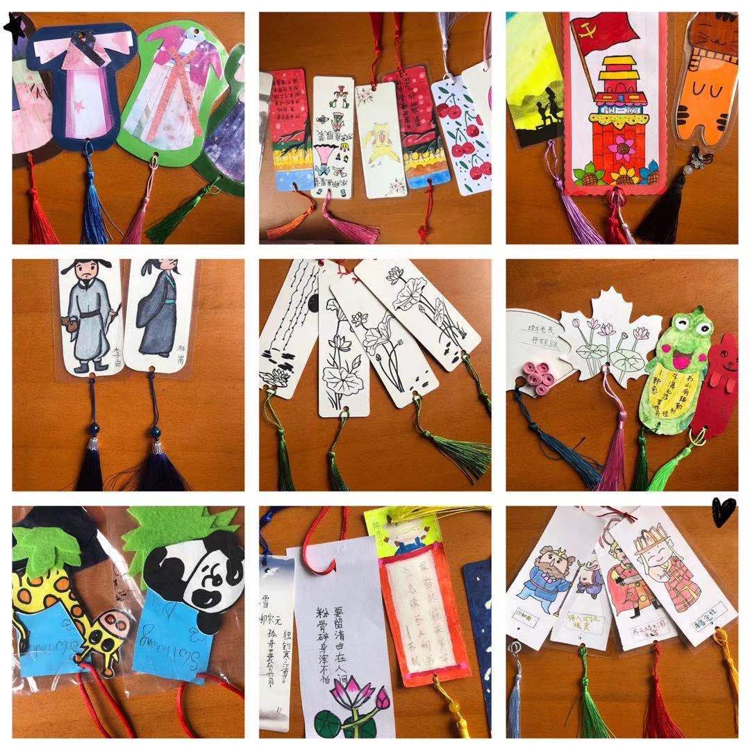 书签制作 制作书签,是一件有意义的是事。孩子们在美术老师的指导下,孩子们充分发挥自己的想象力和艺术才能,构思画图,在家长的帮助下,一张张充满奇思妙想的精美书签制作成功了。在班级里展览一下,比一比,你的好看还是我的精美;把它放在书页里夹一夹,不错,挺好用;再推荐几份优秀的参加学校里的评比,获得不错的成绩,好棒!