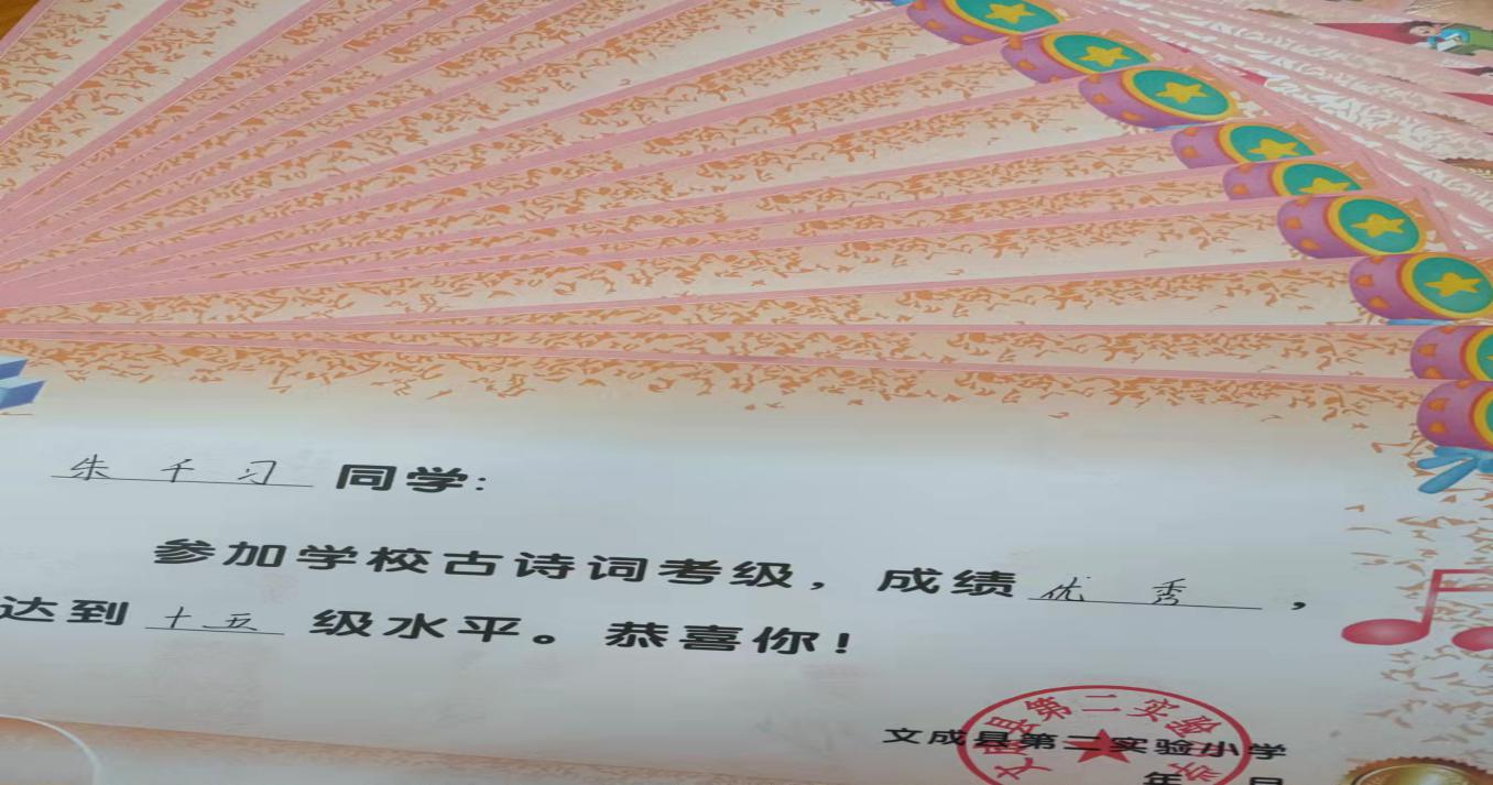 在同学们自信的背诵后,学校给每个过关的同学颁发了证书。瞧,拿到古诗词考级奖状后,孩子们的脸上洋溢着幸福的笑容!