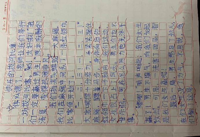 活动总结 通过活动,学生亲身体验后,写起作文来就有话可说。既把看到的、听到的写具体生动,也结合活动特点,抓住关键,畅谈自己的收获或感受:团结就是力量。同时,以组织比赛的形式为学生们创造运动机会,提供展现个人、集体风采的舞台。培养学生集体荣誉感、组织观念、热爱集体、不怕吃苦、勇于拼搏的精神,也是向学生进行德育教育的良好机会。