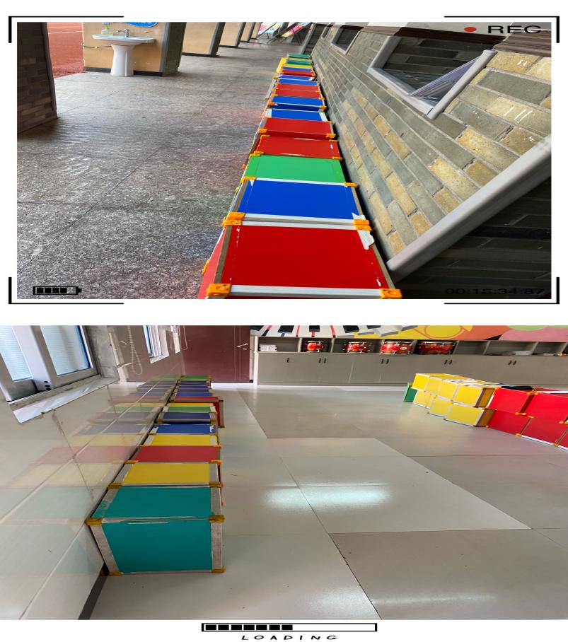 瞧,整齐多彩的凳子排排队!一年级的小朋友迎来了期末游考的日子。四个班学生,通过游考的形式,选取属于自己的歌曲进行表演。由小考官代表检验,学生逐一测试。
