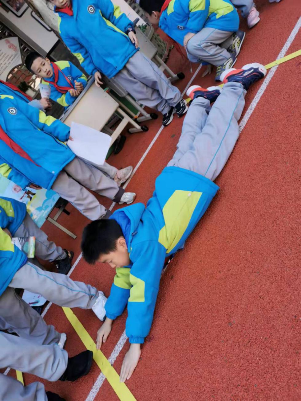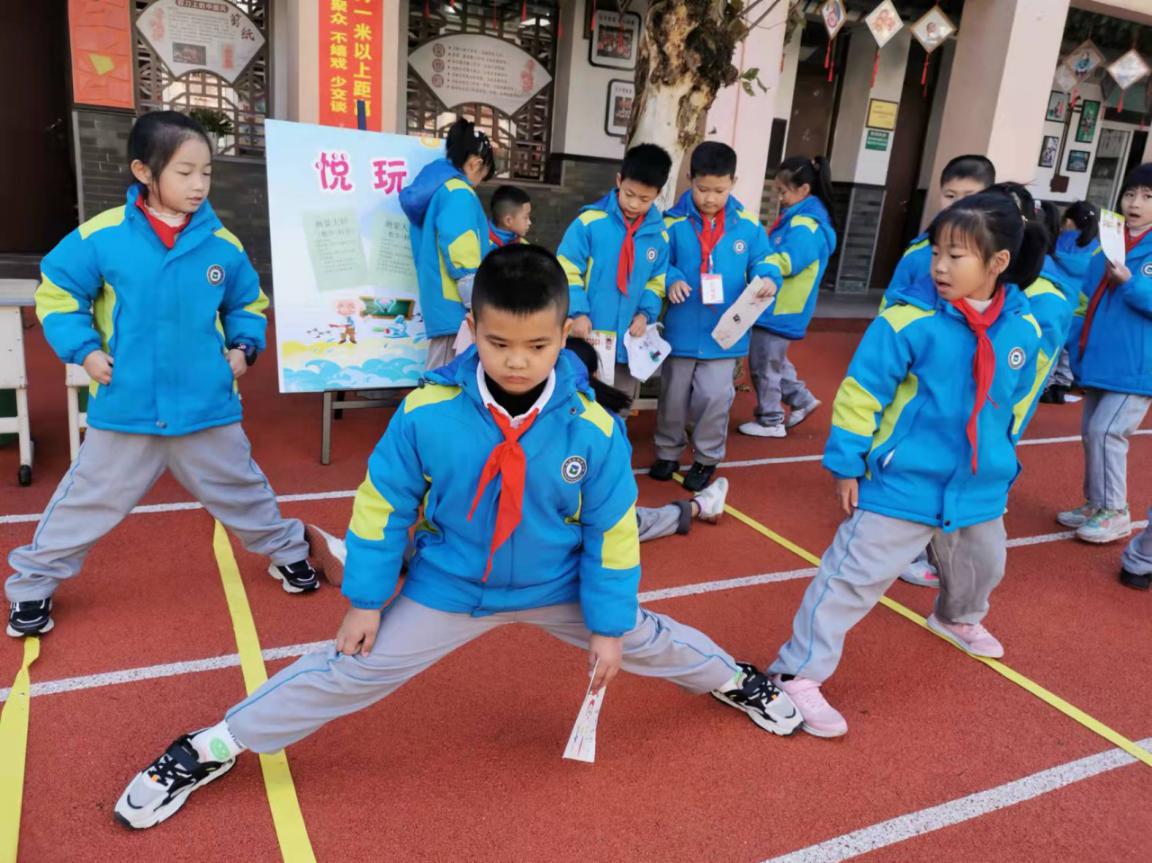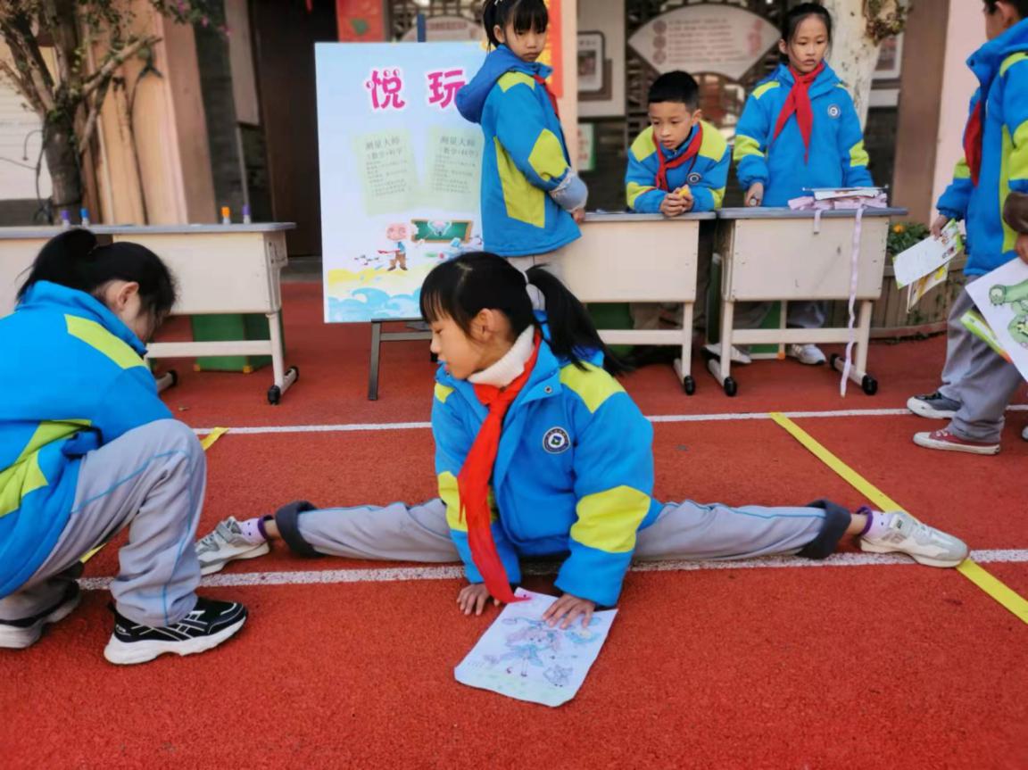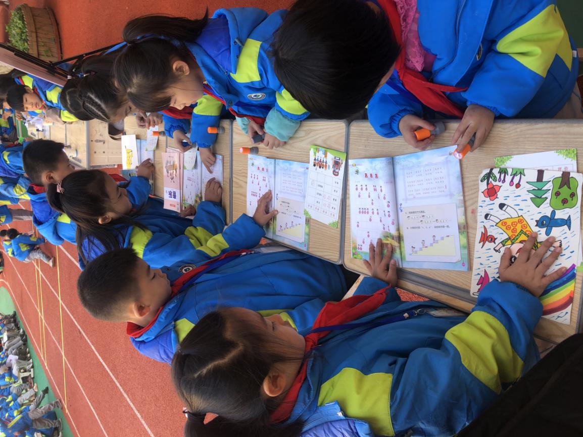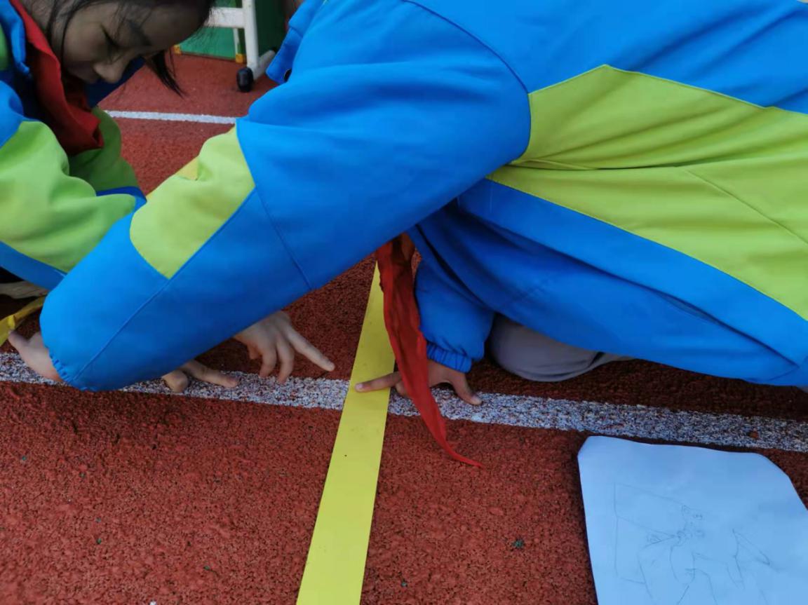 游园活动内容介绍 悦玩——测量大师 (数学+科学) 评价内容: 用身体上的尺子测出2米的长度。 评价要求:两人合作完成 评价标准: 1.误差±5厘米为优秀 2.误差±10厘米为过关 3.误差±20厘米再做一次 跃算——乘法队长 (数学+体育) 评价内容: 定点跳跃,口算1—6的乘法口诀 评价要求:两人合作完成 评价标准: 1.5次计算正确者为优秀 2.4次计算正确者为过关 3.3次计算正确再做一次 乐做——拼图达人 (数学+美术+体育) 评价内容: 往返跑、七巧板拼图 评价要求:两人合作完成 评价标准: 1.1分钟内完成指定图形为优秀 2.1分钟内完成自选图形为过关 3.无法完成者再做一次 游考活动介绍 游考活动开始了!大家在各组长带领下精神谨慎抖擞整装出发,迫不及待地想要大显身手,来展示入学以来满满的收获。 第一关:悦玩——测量大师(数学+科学) 第二关:跃算——乘法队长(数学+体育) 第三关:乐做——拼图达人(数学+美术+体育) 活动照片: