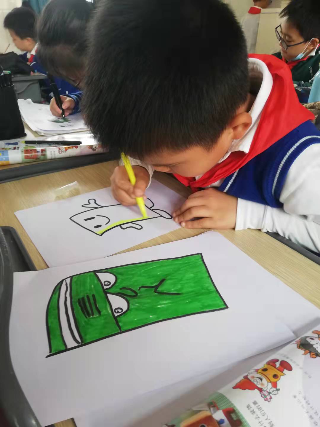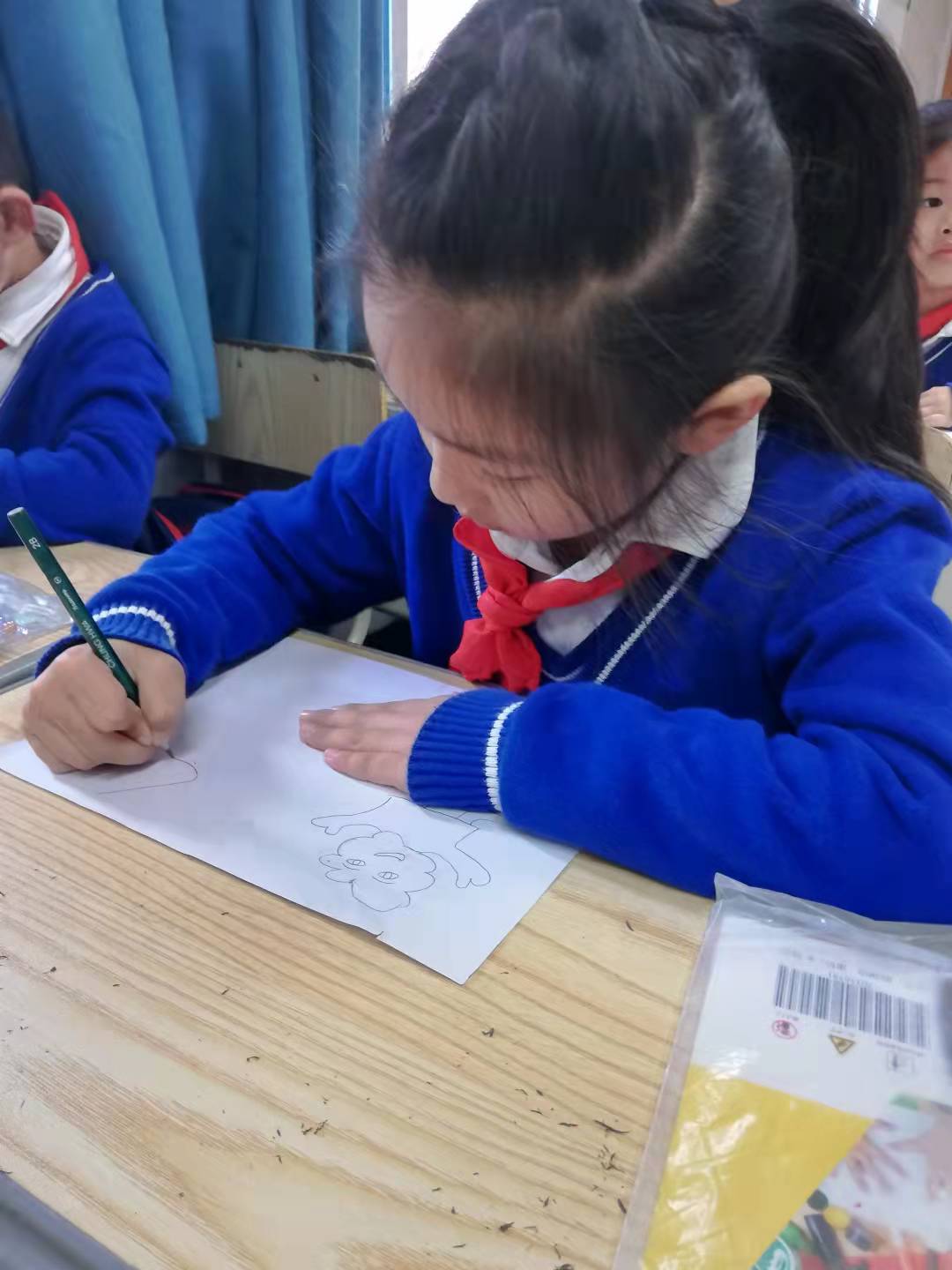 每位同学自带彩纸,题目绘画《动漫宝宝》为内容,大胆进行创作