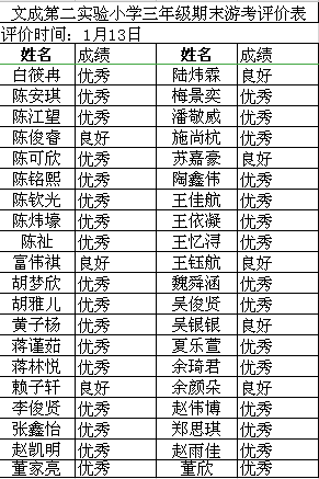 三上数学三(3)三(4)期末乐考总结 秋风扫落叶,初冬寄寒声。尽管气温急转剧下,但是校园内却热闹非凡。在老师们的精心准备下,在孩子们的满心期待下,1月13日上午,金色的阳光洒在实验二小那黄绿相间的塑胶操场上,显得格外美丽。一排排整齐的椅子摆放在操场正中央,孩子们穿着蓝色的冬季校服,聚精会神地盯着大屏幕,正耐心地等待着大屏幕上显示的测试序号,生怕错过了游考的时间。