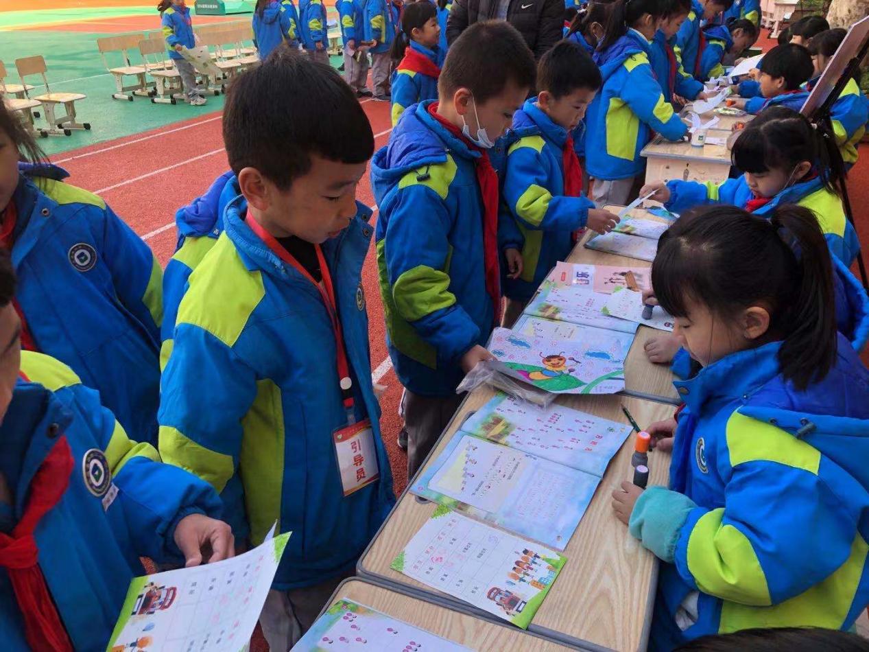 快乐游考,童心飞扬——记实验二小二(1)班语文“游考”活动11月20日早上,实验二小二年级段热闹非凡。小朋友们脸上满是笑容,排着整齐的队伍,手中拿着精美的“期中游考卡”, 认认真真地来到操场,进行期中游考。在校教导处的牵头下,二年级语文教研组老师根据据浙江省教育厅教研室《小学低年级语文和数学教学要求的调整意见》要求,制定《实验二小二年级语文期中游考考试方案》(附后),科学规划游考内容,变传统的书面考试为书面、口头、操作等有机结合的评价方式——“游考”。本次语文游考包括“朗诵、讲故事、词语大冲关”等三项内容,力求体现检测内容的趣味性和开放性,让学生真正实现快乐学习和有效学习,使评价更为全面、开放、灵活。闯关时,全体学生都自主抽签选择题目进行回答。现场测试家长考官根据学生的表现,以打星的方式进行现场评价。二年级老师都十分认真地对待本次“游考”活动,从内容的精心选择,到形式的有趣设计,包括布置场地,准备游考卡……在引导员的带领下,游考在有条不紊地进行着 |