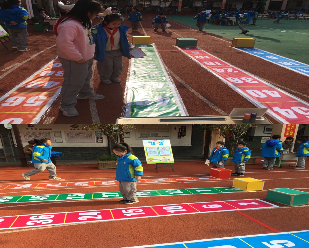 四、乐考准备: 1、材料准备 (1)悦玩项目数学+科学材料: 测量工具: 直尺8把(学生自备),软尺8条(科学教具) 测量物品: 塑料杯8个、调羹(木、铁、塑料、陶瓷)各8个,碗(木、铁、塑料、陶瓷)各8个,竹片8片,纸杯8个,瓦楞纸8块,毛笔8支(科学教具)。 (2)跃算项目数学+体育材料(提前打印制作数字地贴,做成四条通道,说对后跳到下一个)