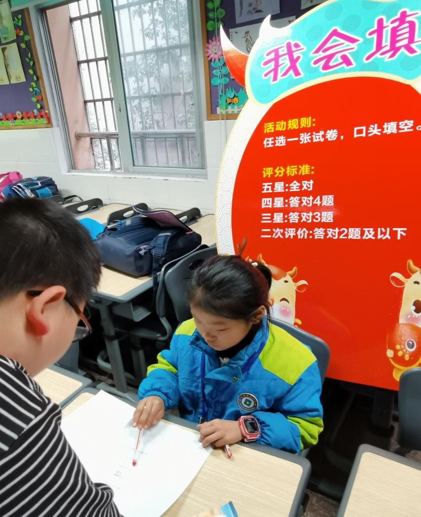 三、综合评价 我们对学生的期中期末成绩,采取游考的形式。在游考过程中,不仅能提高学生的计算、推理、分析的能力、综合运用知识的能力,还能提高学生的诸多非智力因素,语言表达能力,临场发挥和应变能力,激发学习数学的兴趣,树立了学习的信心。这样新鲜的考试,无论从形式上还是内容上看,都能更全面、更客观地展示出孩子在一学期内的进步与成长,减轻了学生的学习负担和精神压力,更有益于孩子的身心发展。 综合评价剪影: