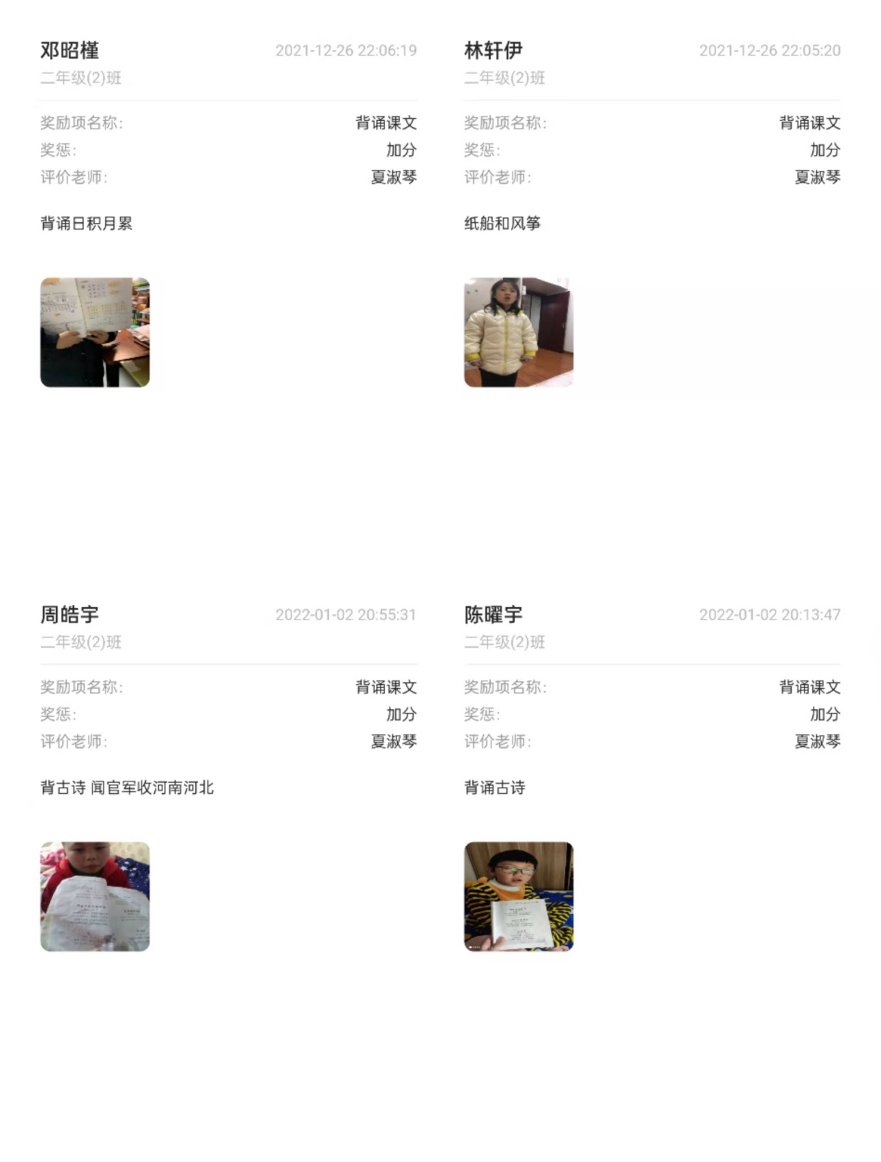 二年级(上)语文夏淑琴12月份1+x过程性评价