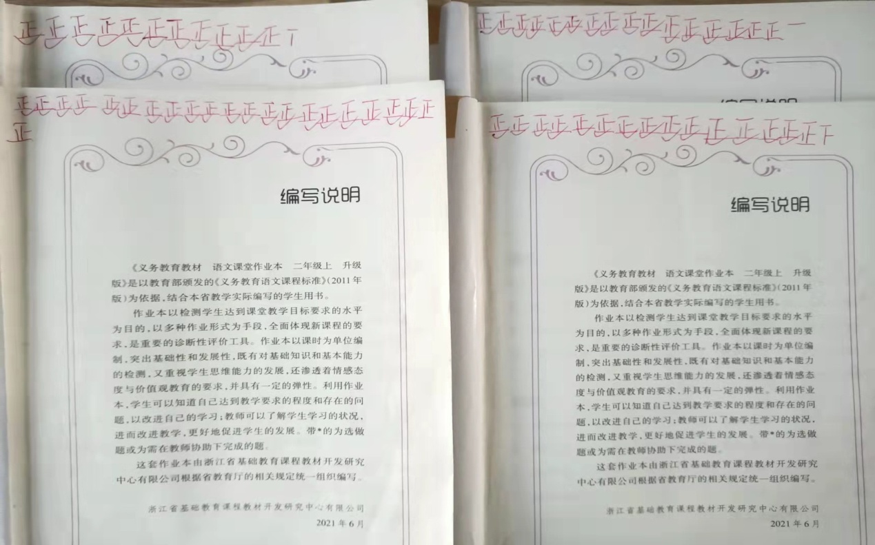 针对《课堂作业本》有错误的孩子,进行第二次或更多次面批订正,直到弄懂做对为止。然后在他们本子上画上一面上小红旗。