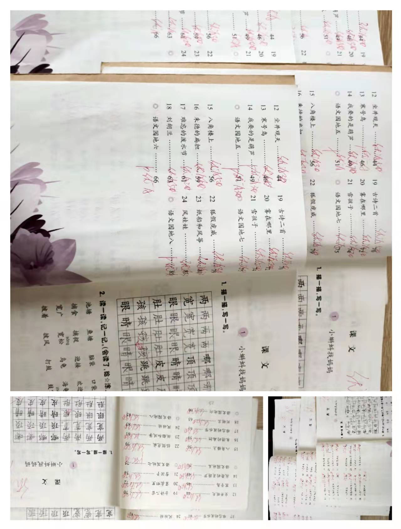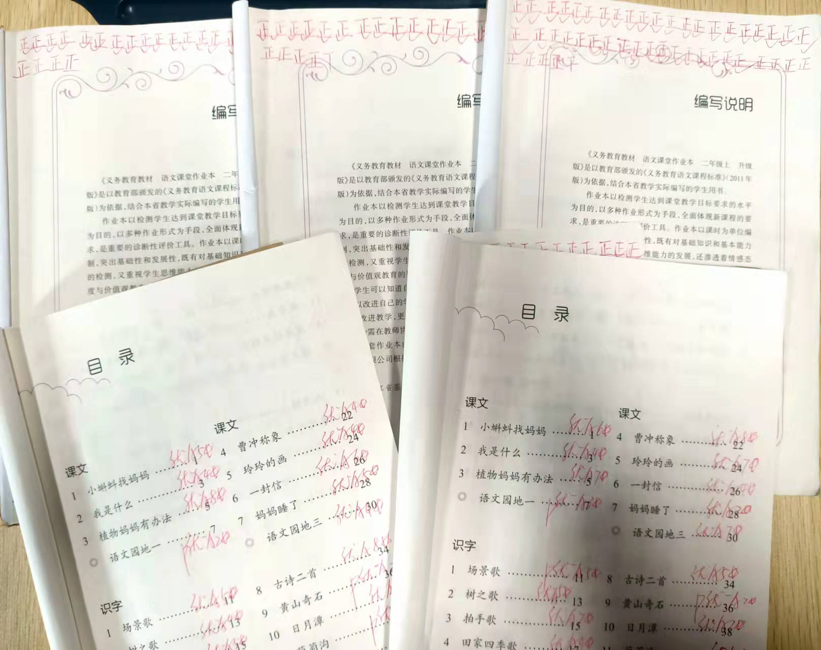 每次批改之后,我就及时把每课所得的等级、五角星数登记在作业本的目录上,以便统计。