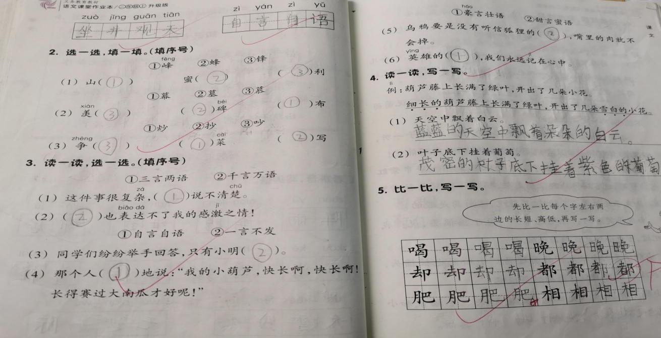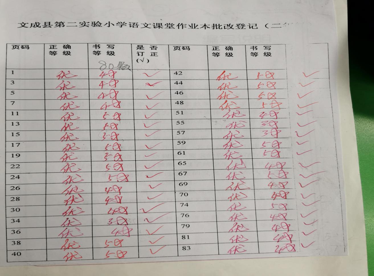 针对《课堂作业本》有错误的孩子,进行第二次或更多次面批订正,直到弄懂做对为止。然后在他们本子上已经订正的地方,画上一面上小红旗,前面总评那栏再打勾,督促学生及时、正确完成,养成按时完成作业的习惯。