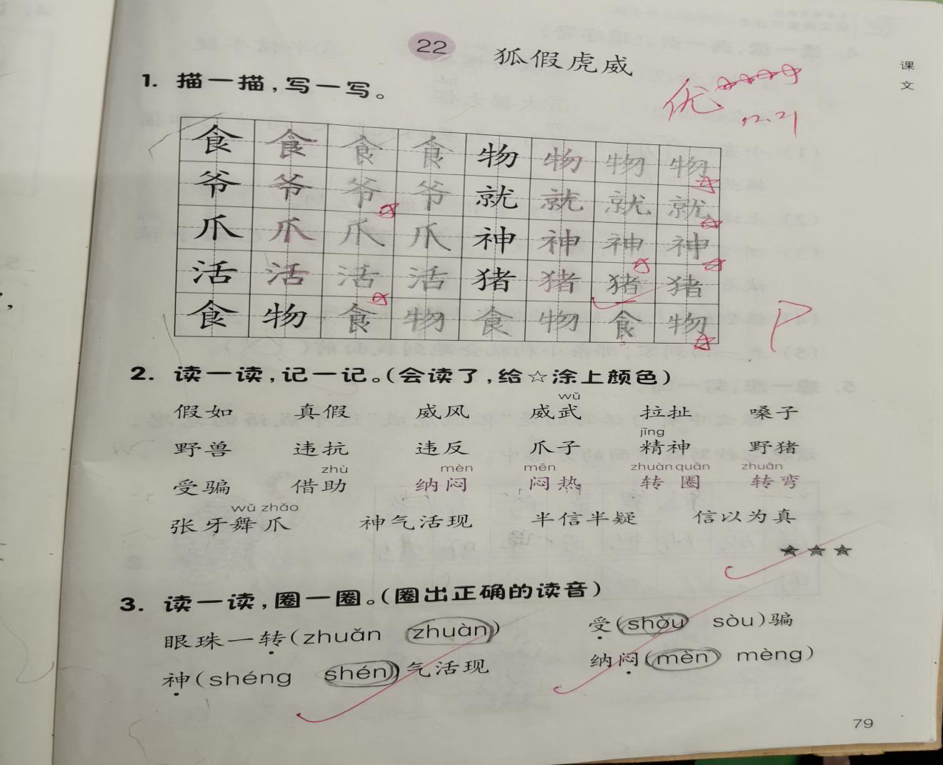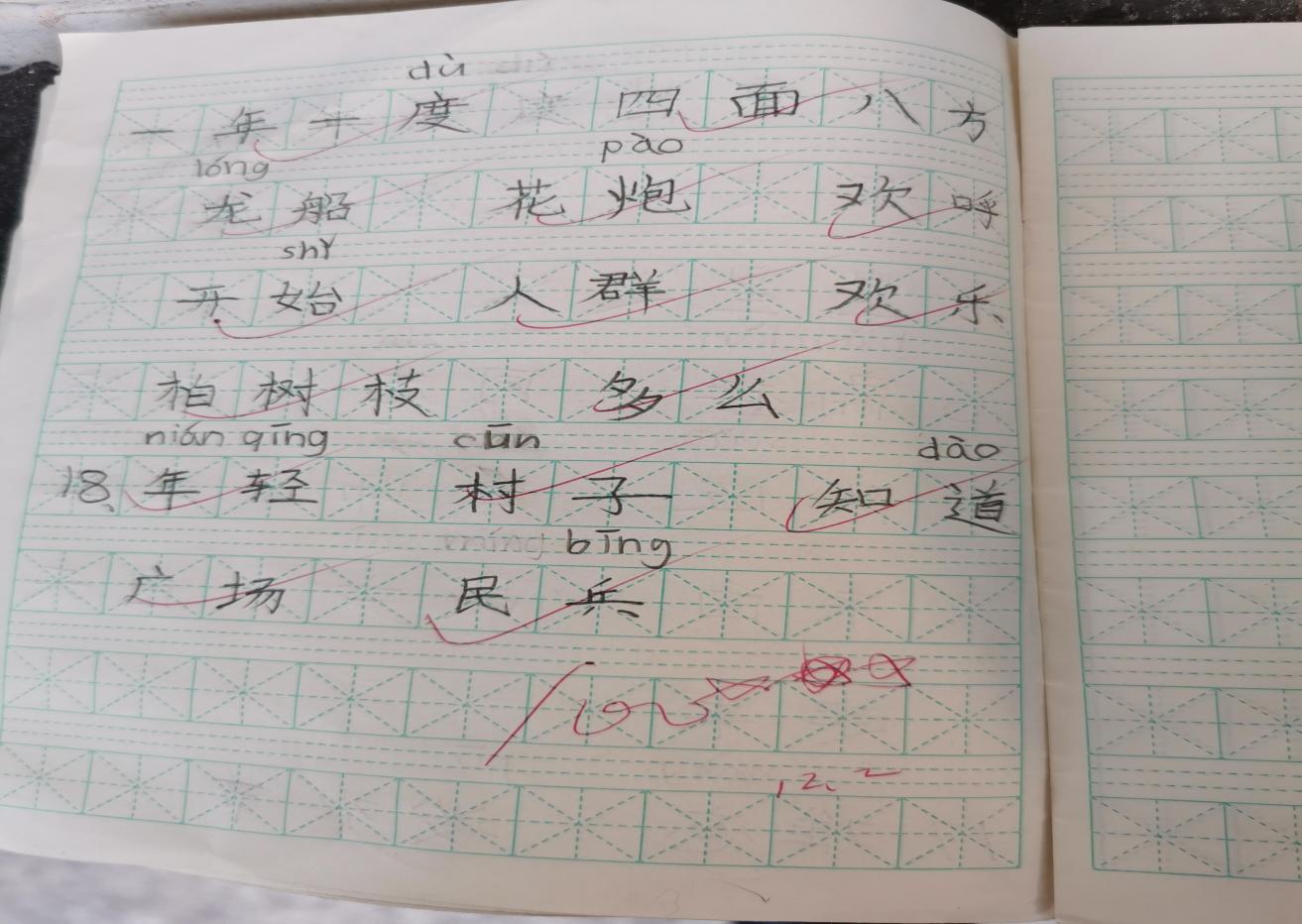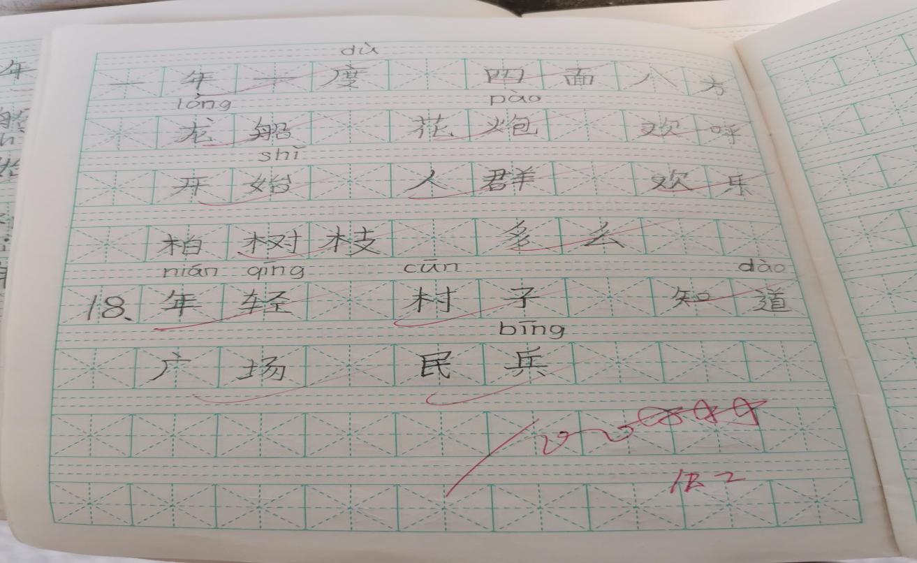 听写采用百分制,错一个字扣二分,生字拼音扣一分,订正后给予一面小红旗,激发孩子认真学习生字词的兴趣。