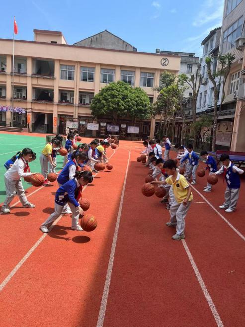 2、通过本课对各种动作的练习,学生能做出原地运球的动作,激发学生对篮球的兴趣。着重强调蹬、伸结合,提高学生的身体协调性。