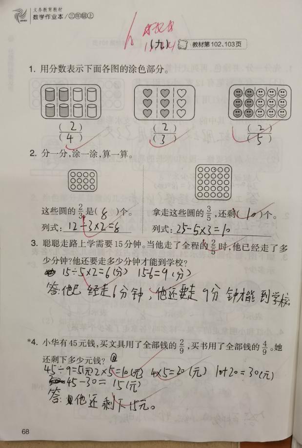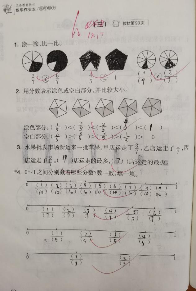 一个学期即将过去了,孩子们各方面的表现都得到了很大的提升。本月的学习内容是:第七单元《长方形和正方形》、第八单元《分数的初步认识》、第九单元《数学广角》。 其中第七单元的教学内容包括:四边形的初步认识;长方形、正方形的特征;周长的含义;长方形、正方形的周长计算;解决实际问题。这部分内容的教学十分重要,因为长方形和正方形是最基本的平面图形。它们的形状比较简单,特征比较明显,应用也十分广泛。正方形是表示面积单位的形状,而长方形面积的计算方法则是其他平面几何图形计算方法的基础。本单元分为三个阶段,第一段主要教学四边形的特征、长方形和正方形边的名称、长方形和正方形边和角的特点;第二段主要教学周长的含义及长方形和正方形周长的计算;第三段教学如何运用四边形及周长的知识解决生活中的实际问题。 本单元的教学目标是: 1、通过观察、操作等活动,使学生认识四边形,进一步认识长方形、正方形的特征; 2、结合实例使学生知道周长的含义,能测量简单图形的周长,探索并掌握长方形、正方形的周长公式; 3、使学生能根据长方形、正方形的周长公式,解决生活中的实际问题,感受数学与生活的联系; 4、通过多种活动,发展学生的空间观念和推理能力。 单元重点:掌握长方形、正方形的周长公式,发展空间观念。 单元难点:通过认识长方形、正方形的特征,探索并理解长方形、正方形的周长公式。 第八单元的教学内容在编排上分为三个小节。第一小节是分数的初步认识,先教学认识几分之一,再认识几分之几,同时结合几分之一和几分之几的认识说明它们的认识写法和读法并介绍分数各部分间的名称。第二小节是简单的同分母分数加减法,借助直观操作理解算理、掌握算法,目的也是为了加深对分数含义的理解。第三小节是分数的简单应用,让学生学习用分数解决一些简单的实际问题。 学生虽然第一次认识分数,但在生活中已接触过一些分数,对分数有一定的理解。而且通过三年级分数的初步认识,学生能为五年级进一步学习分数奠定基础,也为学习小数做好了铺垫。 本单元的教学目标是: 1.在具体情境中,通过操作活动初步认识几分之一和几分之几;会读、写简单的分数;能进行简单分数的大小比较。 2.引导学生借助实物模型、面积模型和数线模型,进一步认识分数,其中的一份或几份也可以用分数表示,能解决有关分数的简单实际问题。 3.感悟数形结合的思想和方法,发展数感,实现数概念的拓展;体会分数在实际生活中应用和价值。 单元重点:初步认识分数 单元难点:体会分数在实际生活中的应用和价值,感悟数形结合的数学思想和方法。 第九单元教学集合思想,介绍维恩图表示集合及其运算的方法,让学生体会集合的概念及集合的运算(并集、交集),学习用集合的思想方法思考和解决简单的实际问题,为今后的学习奠定基础。学生已有一定的集合思想,有一定的生活经验。 本单元的教学目标是: 1、让学生经历解决问题的过程,了解简单的集合知识,初步感受它的意义。 2、使学生学会借助维恩图,运用集合的思想方法来解决较简单的实际问题,从而感受到数学与生活之间的相互联系。 3、培养学生合作学习的意识和学习的兴趣。 单元重点: 运用集合的思想解决问题。 单元难点:学会借助维恩图,运用集合的思想方法来解决较简单的实际问题。 针对以上教材特点、学习目标、单元重难点和学生情况,制定以下评价项目: 项目一:作业评价(1评价) 活动目的:了解学生对所学知识的掌握情况及作业书写整洁情况。课堂作业题是学生在课堂上即时完成的作业,它是数学教学设计实施过程中的重要环节,它往往是对课堂教学重点的巩固或检测,也是教师掌握教学情况,进行反馈调节的重要措施。课堂作业本,我一般在新课后当堂完成,然后上交进行批改。 具体要求:批改的时候,首先采用A、B、C等级对学生的正确率进行评价,然后,采用1星、2星、3星对学生的书面进行评价,作业书写整洁端正可得3星,次之则得2星、1星,直至无星。二次批改时,进行面批,学生订正好再把等级补上。订正情况采用“画小旗子”提示 以下是部分学生课堂作业本的情况: