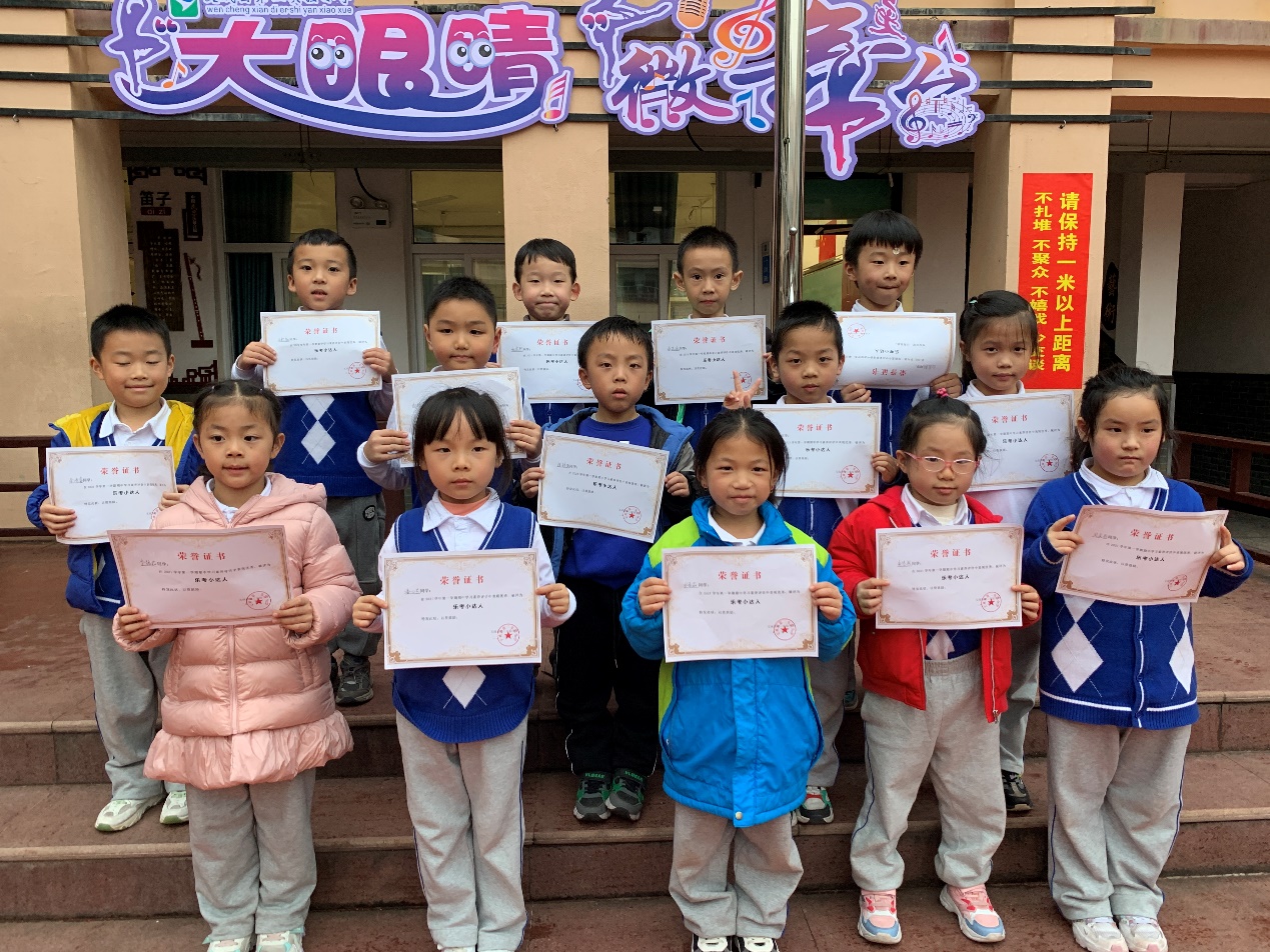本项目教师感受: 《新课标》提出:培养学生对汉字以及汉字学习的态度和情感,有主动识字的愿望,初步感受汉字的形体美。所以,游考时创设有趣游考情境,自由选择其中一组词语进行认读,激发学生兴趣,让他们在兴趣盎然中边玩边学。这样,在充分调动学生无意注意的同时也促使其有意注意的发展,以促使学生思维灵活、有创造性地发展。此项游考项目,我们考察学生的识字能力,寓教于乐。 (三)背诵高手 活动目的: 通过游考,让学生感受到朗诵儿歌的乐趣,得以考察学生的记忆能力。 活动材料: 制作卡片,卡片上有有5首儿歌的题目。 活动规则: 孩子自主抽取一篇课文,抽到哪一首儿歌课文就朗诵那篇课文。 评分方法: (五星图):能正确、流利、有感情地朗诵课文。 (四星图):能较为流利地朗诵课文,能做到不加字、不漏字。 (三星图):基本能朗诵课文,存在明显唱读、结巴、不流利现象。