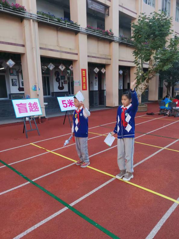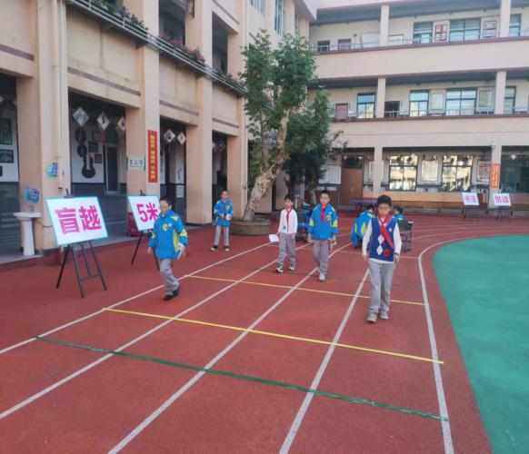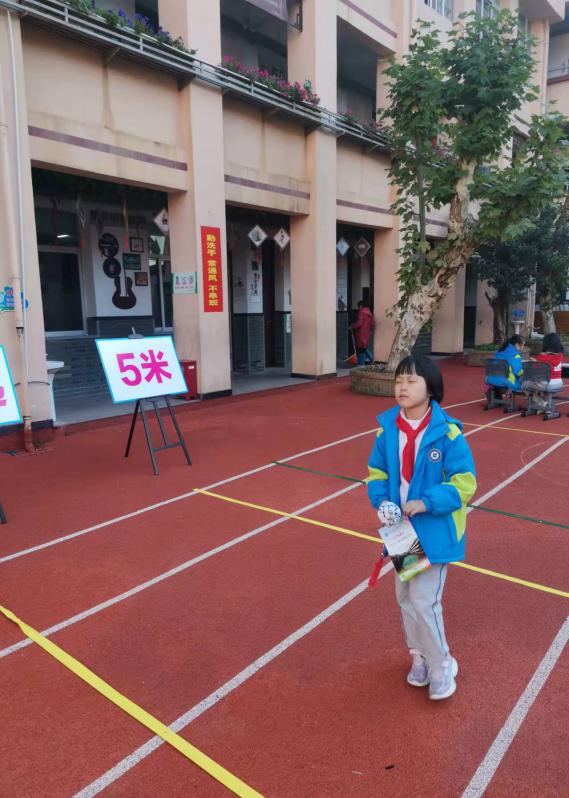 乐考内容与方法 盲越5米——数学+综合实践应用①测试方法:在起点线闭眼向前走5米,认为走到5米了举手示意。 ②评价标准:睁开眼睛或是睁眼偷看测试马上结束。 优秀:停在4-6米区域内; 通关:停在停在4-6米区域外3-7米区域内; 待努力:停在3-7米区域外,或是违规。 乐考过程展示 |