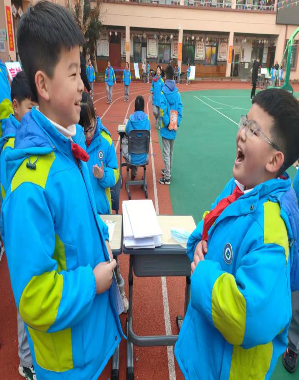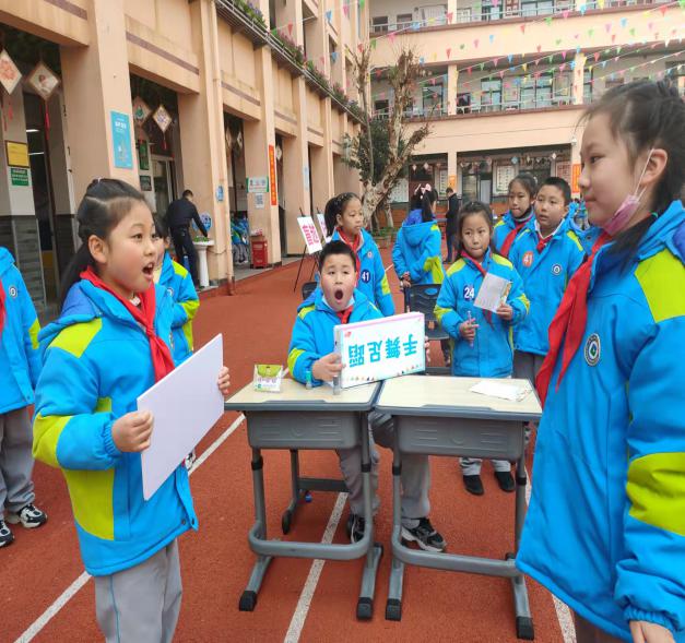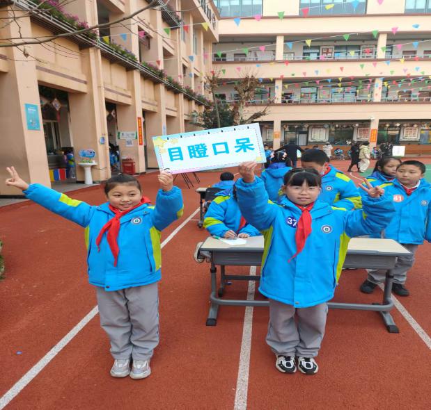 “品词悦演”不仅紧扣本册语文要素中的理解词义,还充分展示了孩子们在语文学习中的积累、理解、演绎和想象能力。 孩子们在游园似的环境下测试,个个笑靥如花,兴奋不已,自信地完成各项闯关任务。小考官根据其表现,以等级的方式进行现场评价,力求让评价成为孩子们展示自己成功的舞台。 这次期末评价,将学科知识融入了游戏,寓教于乐,充分体现了双减之下老师以培养学生的核心素养为宗旨,体现实验二小的孩子享受幸福的教育。