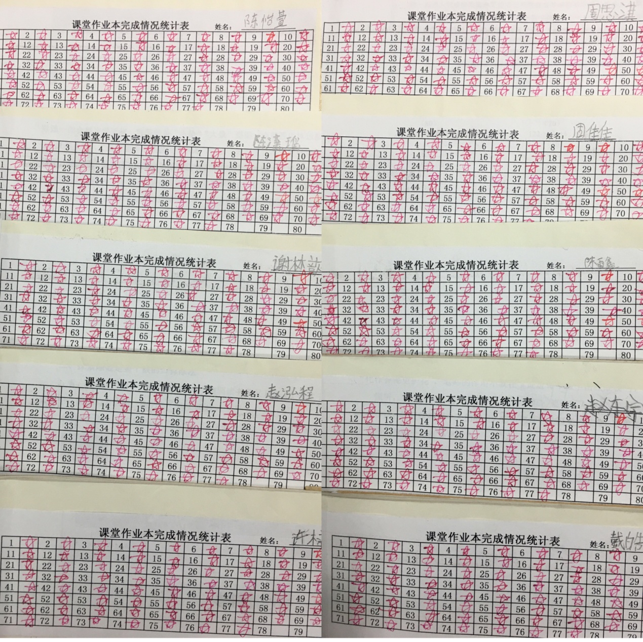 正确率 | 全对5☆,错一题减一颗星,以此类推。 | 订正后,在题后面重新画☆。 |